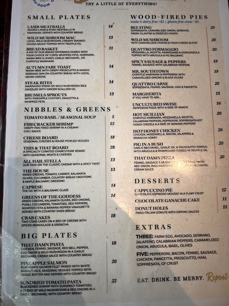 Guests rave about the pizza selection, particularly the imaginative "Pig in the Bush" and the spicy "Hot Sicilian," each delivering exceptional flavor. The Brussels sprouts appetizer consistently impresses, setting the stage for a fantastic dining experience. Customers also appreciate the thoughtful lunch specials, featuring a cozy personal pizza paired with a fresh salad.