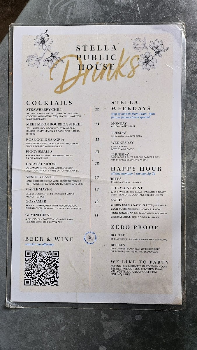 The inviting atmosphere, paired with attentive service from friendly staff like Josh and Dede, ensures a warm welcome for all. Whether you're enjoying a casual lunch date or celebrating a special occasion, Stella Public House guarantees a memorable dining experience in the heart of San Antonio.